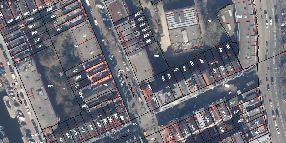 Het perceel waarop Da Costastraat 127-D staat heeft een oppervlakte van 516 m². Dit is een groot perceel. De perceeloppervlakte wordt geregistreerd door het Kadaster. Gedetailleerde informatie over de maten van dit perceel kunt u vinden in het rapport Kadastrale kaart met maatvoering van Da Costastraat 127-D.