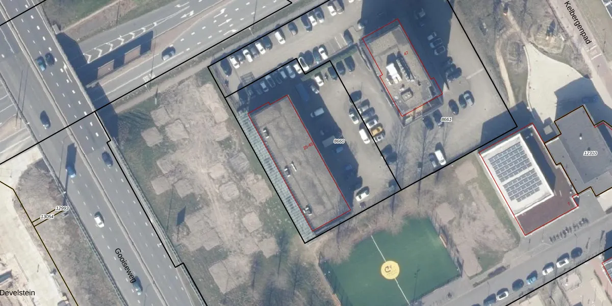 Het adres ligt op het perceel WPK02-L-8660, dat zich in de kadastrale gemeente Weesperkarspel bevindt. Het perceel is met 1895 m² relatief groot. Het gemiddelde ligt in de kadastrale gemeente Weesperkarspel op 1743,84 m². Het grootste perceel in de kadastrale gemeente is 1,04 km². Het kleinste perceel heeft een oppervlakte van 0 m². Er zijn 11 adressen aanwezig op het perceel. De laatste wijziging in het de Basisregistratie Kadaster (BRK) was op 08-12-2009.