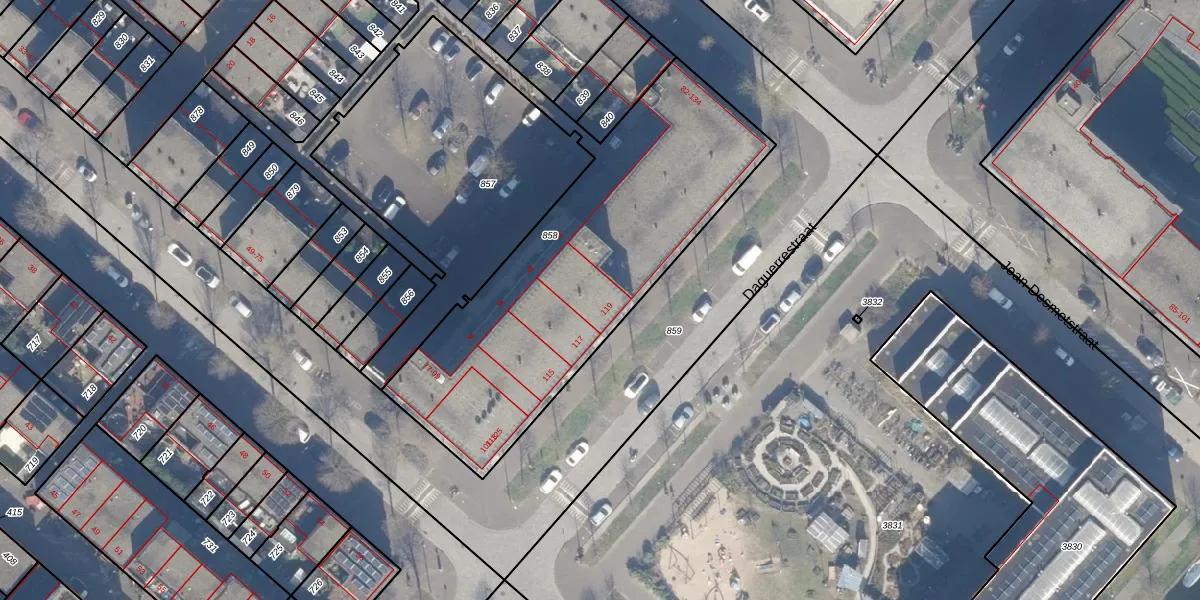 Daguerrestraat 119 is gelegen op kadastraal perceel ASD41AU858. Deze kadastrale aanduiding is uniek en wordt gebruikt door het Kadaster om eigendomsrechten en andere zakelijke rechten vast te leggen. Het perceel maakt onderdeel uit van de kadastrale gemeente Amsterdam.