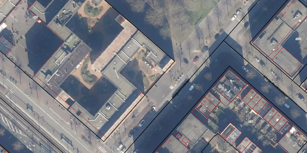 Daguerrestraat 53-B is gelegen op kadastraal perceel ASD41AU165. Deze kadastrale aanduiding is uniek en wordt gebruikt door het Kadaster om eigendomsrechten en andere zakelijke rechten vast te leggen. Het perceel maakt onderdeel uit van de kadastrale gemeente Amsterdam.