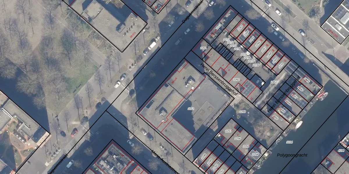 Het adres is gelegen op perceel 1012 in de sectie AU en de kadastrale gemeente Amsterdam. De kadastrale aanduiding is aldus ASD41-AU-1012. Het perceel is kleiner dan gemiddeld in Amsterdam. Het perceel is 1600 m² groot, terwijl het gemiddelde ligt op 7285,32 m². Het kleinste perceel in de kadastrale gemeente is 0 m² groot. De grootste perceeloppervlakte is 2,75 km². Op het perceel liggen in totaal 40 adressen. In de Basisregistratie Kadaster (BRK) werden de grenzen van het perceel geregistreerd op 04-11-2009.