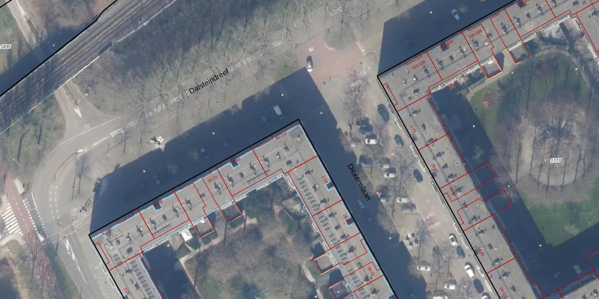 Dalsteindreef 100 is gelegen op kadastraal perceel WPK02A1778. Deze kadastrale aanduiding is uniek en wordt gebruikt door het Kadaster om eigendomsrechten en andere zakelijke rechten vast te leggen. Het perceel maakt onderdeel uit van de kadastrale gemeente Weesperkarspel.
