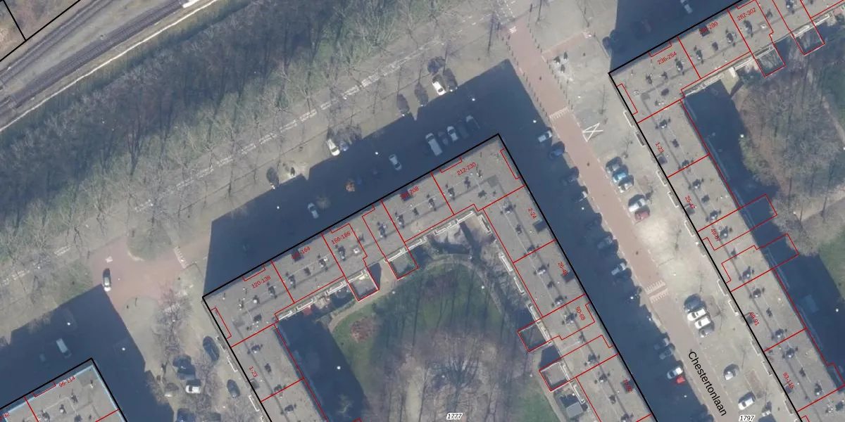 Het perceel waarop Dalsteindreef 194 staat heeft een oppervlakte van 8340 m². Dit is een zeer groot perceel. De perceeloppervlakte wordt geregistreerd door het Kadaster. Gedetailleerde informatie over de maten van dit perceel kunt u vinden in het rapport Kadastrale kaart met maatvoering van Dalsteindreef 194.