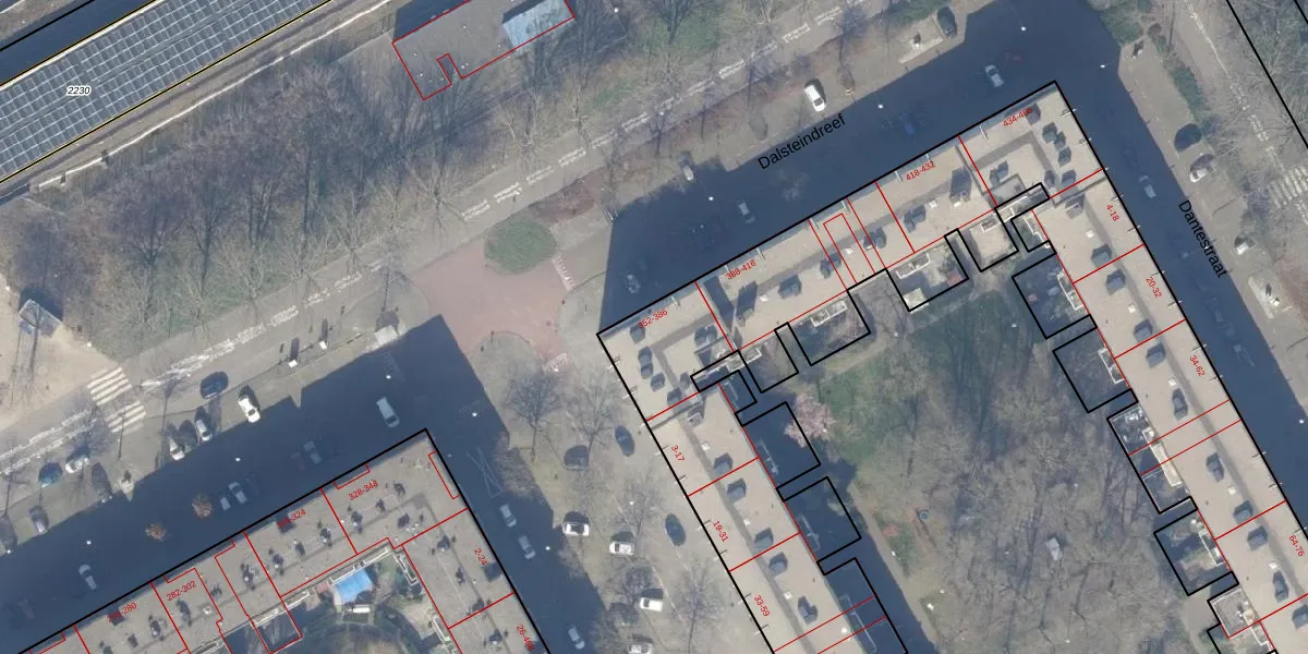 Dalsteindreef 386 is gelegen op kadastraal perceel WPK02A1639. Deze kadastrale aanduiding is uniek en wordt gebruikt door het Kadaster om eigendomsrechten en andere zakelijke rechten vast te leggen. Het perceel maakt onderdeel uit van de kadastrale gemeente Weesperkarspel.