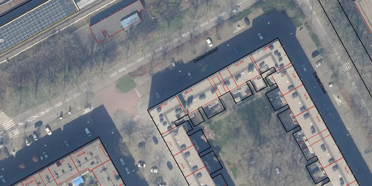 Dalsteindreef 392 is gelegen op kadastraal perceel WPK02A1639. Deze kadastrale aanduiding is uniek en wordt gebruikt door het Kadaster om eigendomsrechten en andere zakelijke rechten vast te leggen. Het perceel maakt onderdeel uit van de kadastrale gemeente Weesperkarspel.