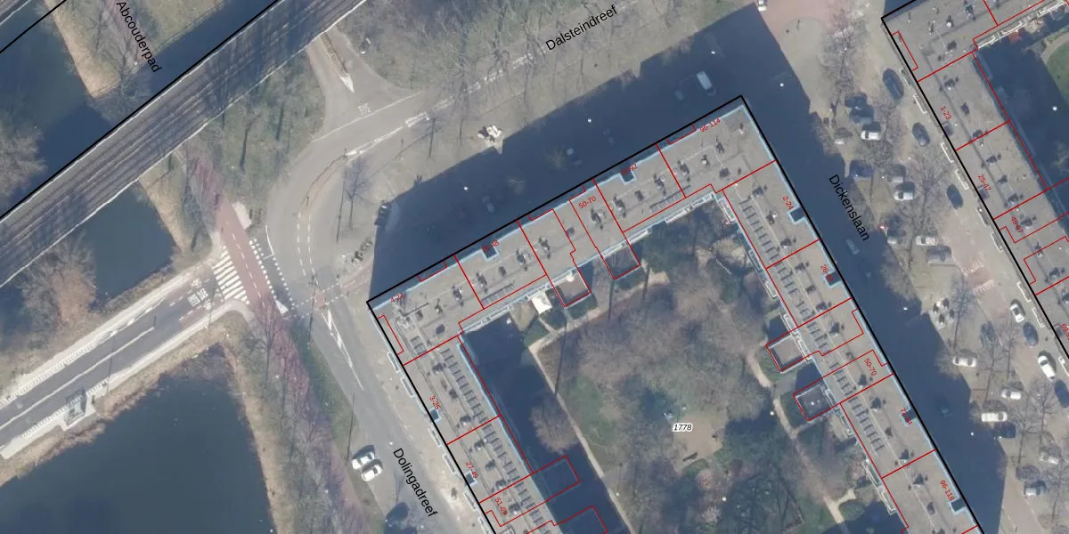 Het perceel waarop Dalsteindreef 48 staat heeft een oppervlakte van 8370 m². Dit is een zeer groot perceel. De perceeloppervlakte wordt geregistreerd door het Kadaster. Gedetailleerde informatie over de maten van dit perceel kunt u vinden in het rapport Kadastrale kaart met maatvoering van Dalsteindreef 48.