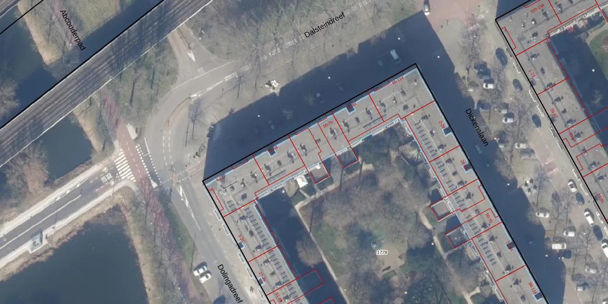 Het perceel waarop Dalsteindreef 60 staat heeft een oppervlakte van 8370 m². Dit is een zeer groot perceel. De perceeloppervlakte wordt geregistreerd door het Kadaster. Gedetailleerde informatie over de maten van dit perceel kunt u vinden in het rapport Kadastrale kaart met maatvoering van Dalsteindreef 60.