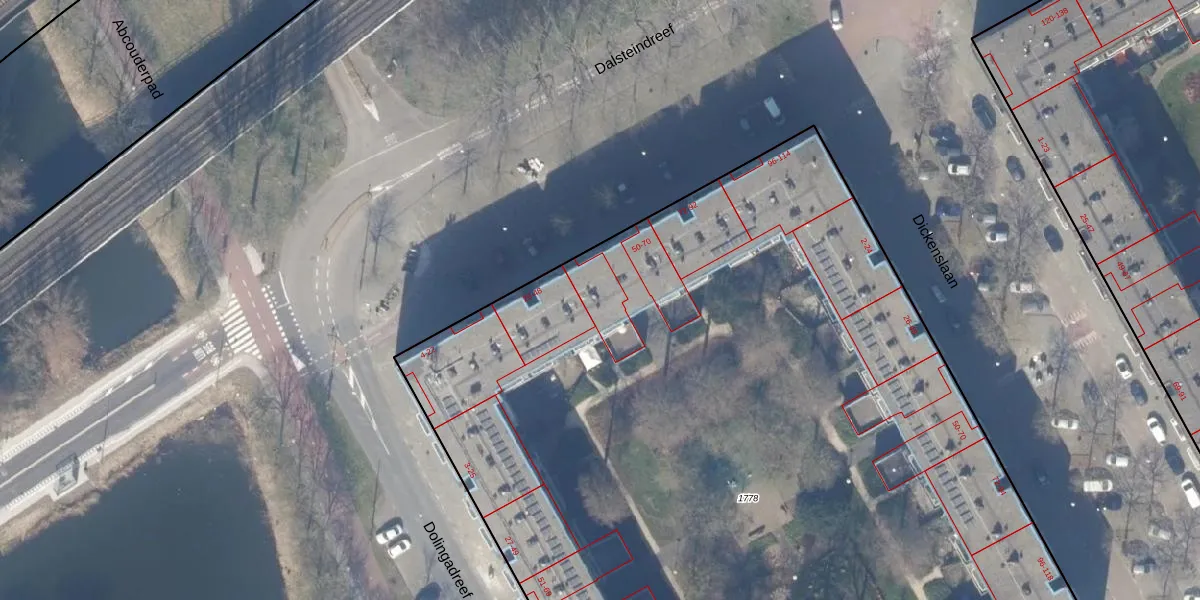 Het perceel waarop Dalsteindreef 66 staat heeft een oppervlakte van 8370 m². Dit is een zeer groot perceel. De perceeloppervlakte wordt geregistreerd door het Kadaster. Gedetailleerde informatie over de maten van dit perceel kunt u vinden in het rapport Kadastrale kaart met maatvoering van Dalsteindreef 66.