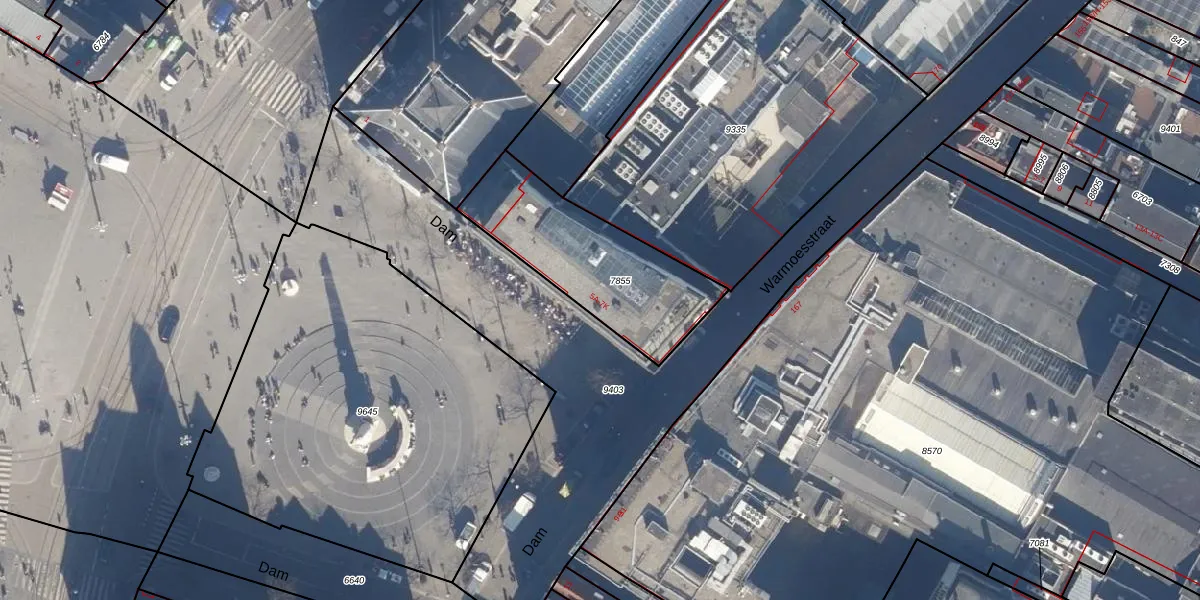 Het perceel waarop Dam 5-C staat heeft een oppervlakte van 590 m². Dit is een groot perceel. De perceeloppervlakte wordt geregistreerd door het Kadaster. Gedetailleerde informatie over de maten van dit perceel kunt u vinden in het rapport Kadastrale kaart met maatvoering van Dam 5-C.