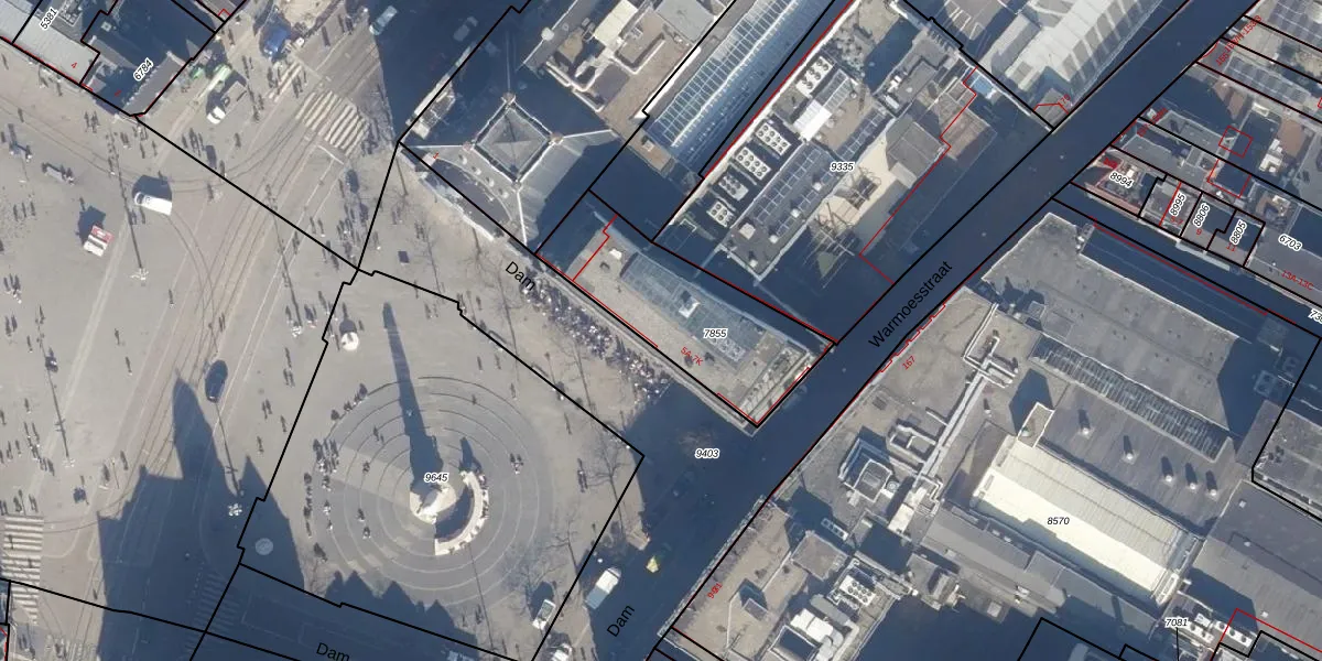 Dam 5-E is gelegen op kadastraal perceel ASD05G7855. Deze kadastrale aanduiding is uniek en wordt gebruikt door het Kadaster om eigendomsrechten en andere zakelijke rechten vast te leggen. Het perceel maakt onderdeel uit van de kadastrale gemeente Amsterdam.