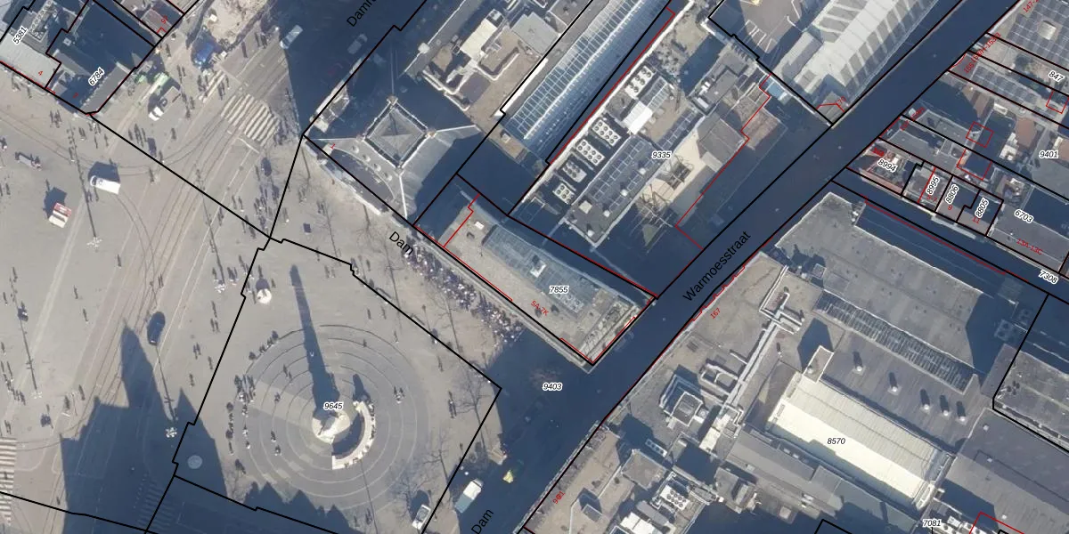 Het perceel waarop Dam 5-P staat heeft een oppervlakte van 590 m². Dit is een groot perceel. De perceeloppervlakte wordt geregistreerd door het Kadaster. Gedetailleerde informatie over de maten van dit perceel kunt u vinden in het rapport Kadastrale kaart met maatvoering van Dam 5-P.