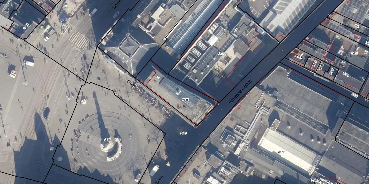 Het perceel waarop Dam 5-R staat heeft een oppervlakte van 590 m². Dit is een groot perceel. De perceeloppervlakte wordt geregistreerd door het Kadaster. Gedetailleerde informatie over de maten van dit perceel kunt u vinden in het rapport Kadastrale kaart met maatvoering van Dam 5-R.
