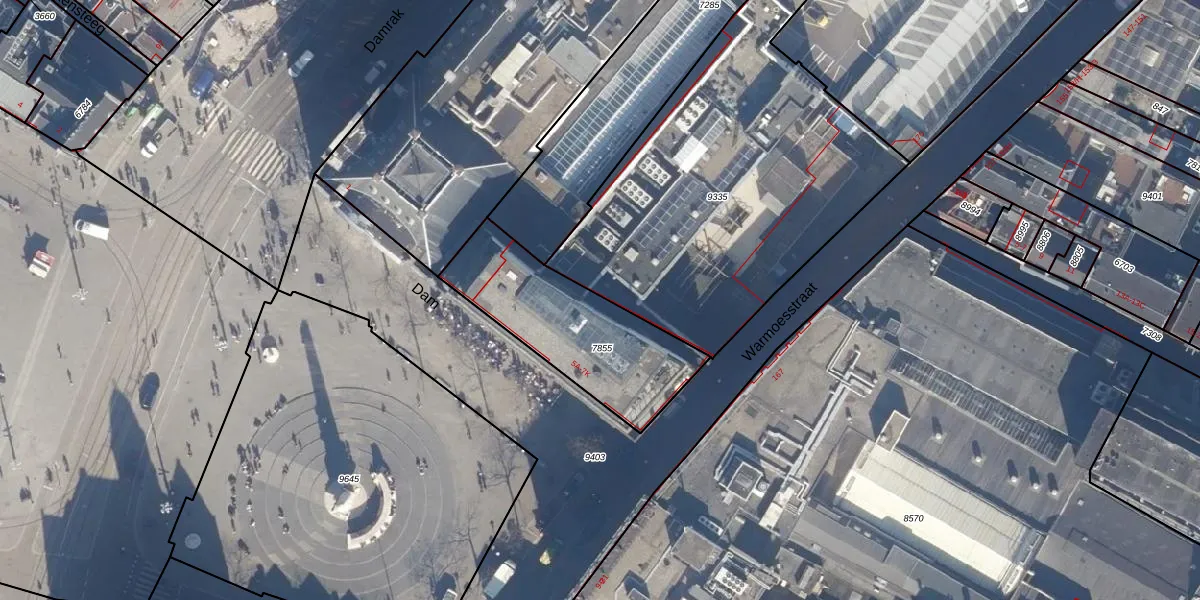 Het perceel waarop Dam 5-Y staat heeft een oppervlakte van 590 m². Dit is een groot perceel. De perceeloppervlakte wordt geregistreerd door het Kadaster. Gedetailleerde informatie over de maten van dit perceel kunt u vinden in het rapport Kadastrale kaart met maatvoering van Dam 5-Y.
