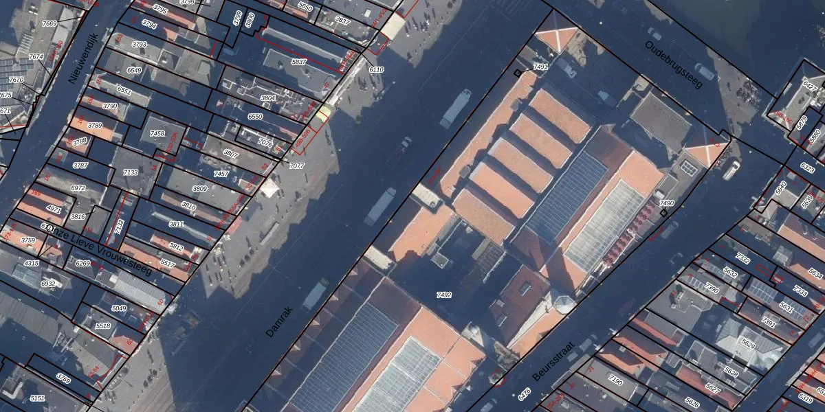Het perceel waarop Damrak 245 staat heeft een oppervlakte van 6386 m². Dit is een zeer groot perceel. De perceeloppervlakte wordt geregistreerd door het Kadaster. Gedetailleerde informatie over de maten van dit perceel kunt u vinden in het rapport Kadastrale kaart met maatvoering van Damrak 245.