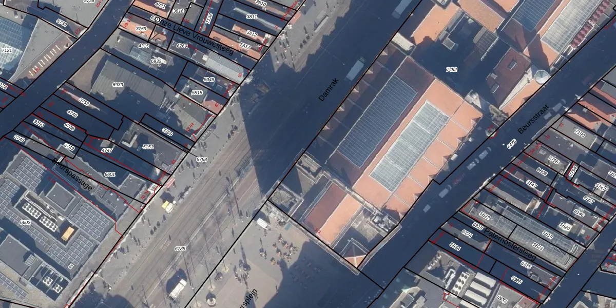 Het perceel waarop Damrak 297 staat heeft een oppervlakte van 6386 m². Dit is een zeer groot perceel. De perceeloppervlakte wordt geregistreerd door het Kadaster. Gedetailleerde informatie over de maten van dit perceel kunt u vinden in het rapport Kadastrale kaart met maatvoering van Damrak 297.
