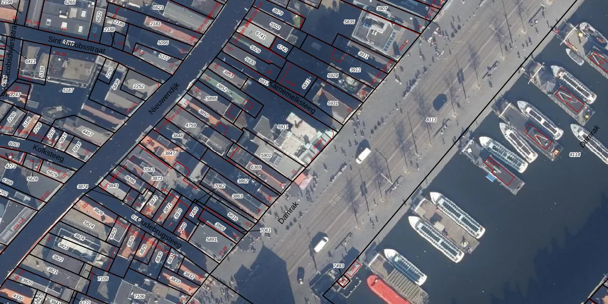 Het perceel waarop Damrak 30-G staat heeft een oppervlakte van 455 m². Dit is een groot perceel. De perceeloppervlakte wordt geregistreerd door het Kadaster. Gedetailleerde informatie over de maten van dit perceel kunt u vinden in het rapport Kadastrale kaart met maatvoering van Damrak 30-G.