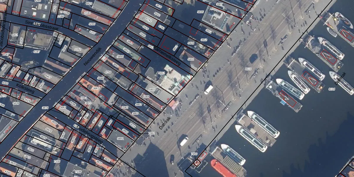 Het perceel waarop Damrak 30-A staat heeft een oppervlakte van 455 m². Dit is een groot perceel. De perceeloppervlakte wordt geregistreerd door het Kadaster. Gedetailleerde informatie over de maten van dit perceel kunt u vinden in het rapport Kadastrale kaart met maatvoering van Damrak 30-A.