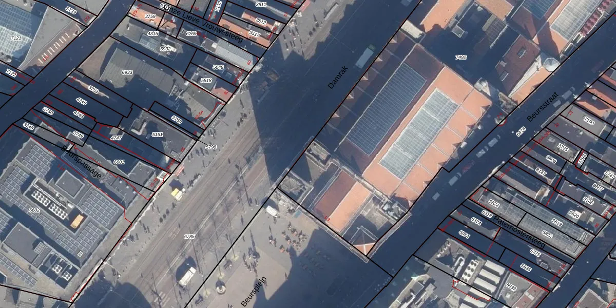 Het perceel waarop Damrak 347 staat heeft een oppervlakte van 6386 m². Dit is een zeer groot perceel. De perceeloppervlakte wordt geregistreerd door het Kadaster. Gedetailleerde informatie over de maten van dit perceel kunt u vinden in het rapport Kadastrale kaart met maatvoering van Damrak 347.