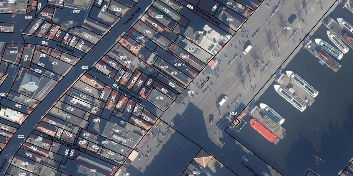 Het perceel waarop Damrak 35-A staat heeft een oppervlakte van 61 m². Dit is een klein perceel. De perceeloppervlakte wordt geregistreerd door het Kadaster. Gedetailleerde informatie over de maten van dit perceel kunt u vinden in het rapport Kadastrale kaart met maatvoering van Damrak 35-A.