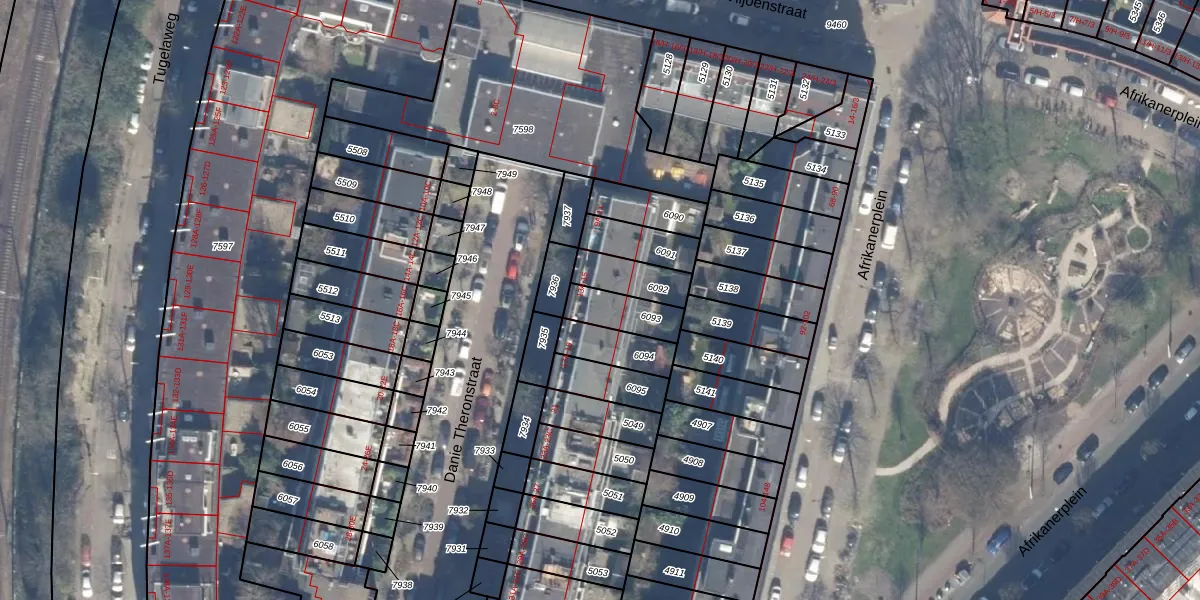 Het perceel waarop Danie Theronstraat 13-A staat heeft een oppervlakte van 116 m². Dit is een middelgroot perceel. De perceeloppervlakte wordt geregistreerd door het Kadaster. Gedetailleerde informatie over de maten van dit perceel kunt u vinden in het rapport Kadastrale kaart met maatvoering van Danie Theronstraat 13-A.