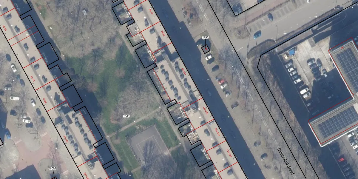 Het perceel waarop Dantestraat 182 staat heeft een oppervlakte van 1,1 ha. Dit is een zeer groot perceel. De perceeloppervlakte wordt geregistreerd door het Kadaster. Gedetailleerde informatie over de maten van dit perceel kunt u vinden in het rapport Kadastrale kaart met maatvoering van Dantestraat 182.