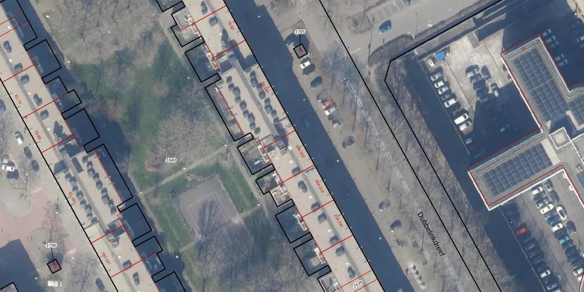 Het perceel waarop Dantestraat 188 staat heeft een oppervlakte van 1,1 ha. Dit is een zeer groot perceel. De perceeloppervlakte wordt geregistreerd door het Kadaster. Gedetailleerde informatie over de maten van dit perceel kunt u vinden in het rapport Kadastrale kaart met maatvoering van Dantestraat 188.