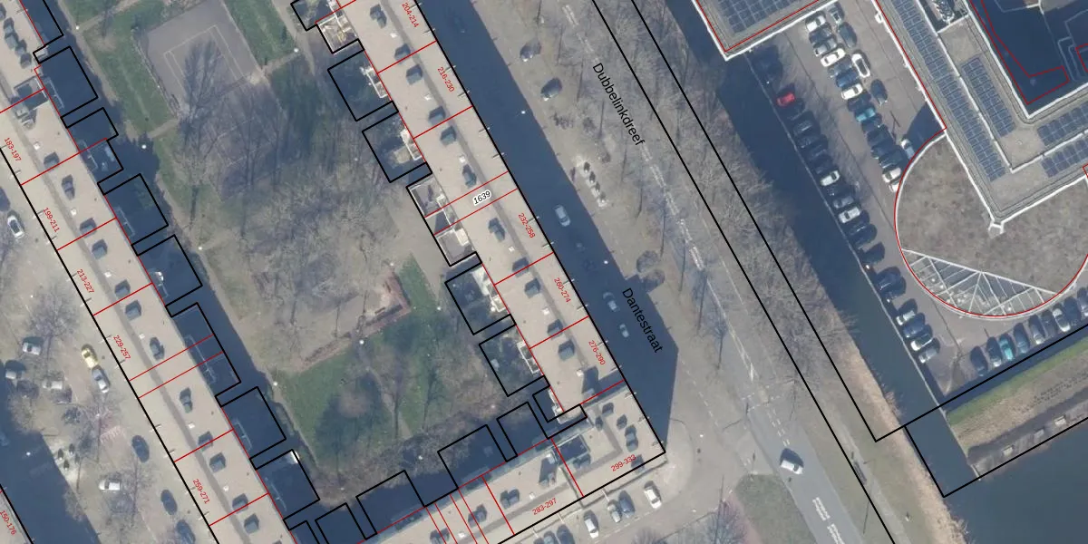 Dantestraat 262 is gelegen op kadastraal perceel WPK02A1639. Deze kadastrale aanduiding is uniek en wordt gebruikt door het Kadaster om eigendomsrechten en andere zakelijke rechten vast te leggen. Het perceel maakt onderdeel uit van de kadastrale gemeente Weesperkarspel.