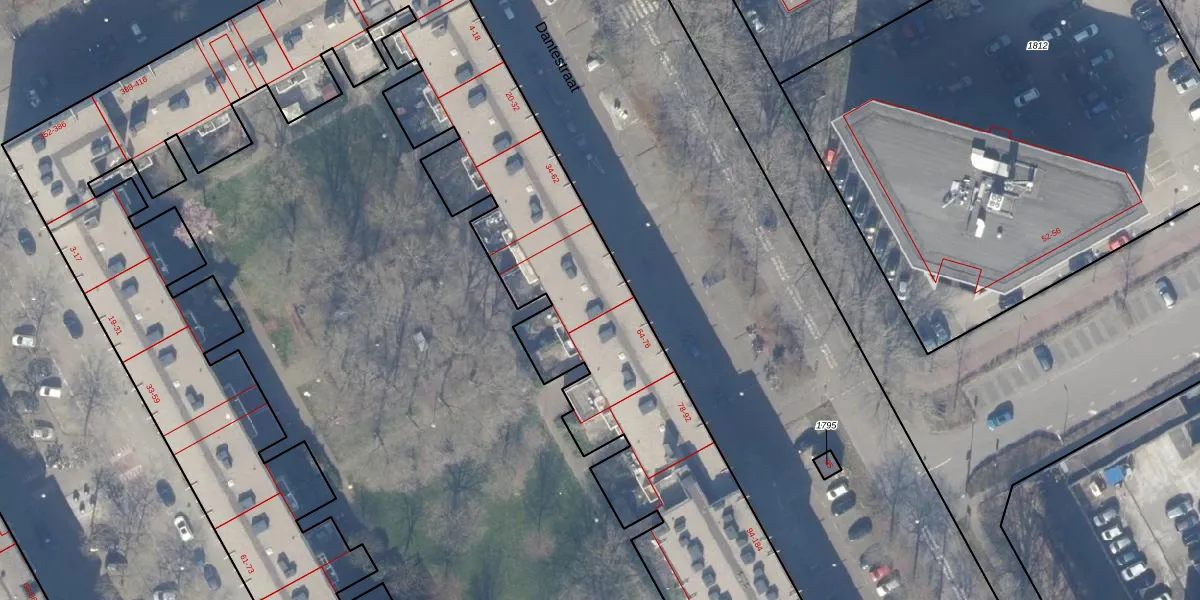 Het perceel waarop Dantestraat 50 staat heeft een oppervlakte van 1,1 ha. Dit is een zeer groot perceel. De perceeloppervlakte wordt geregistreerd door het Kadaster. Gedetailleerde informatie over de maten van dit perceel kunt u vinden in het rapport Kadastrale kaart met maatvoering van Dantestraat 50.