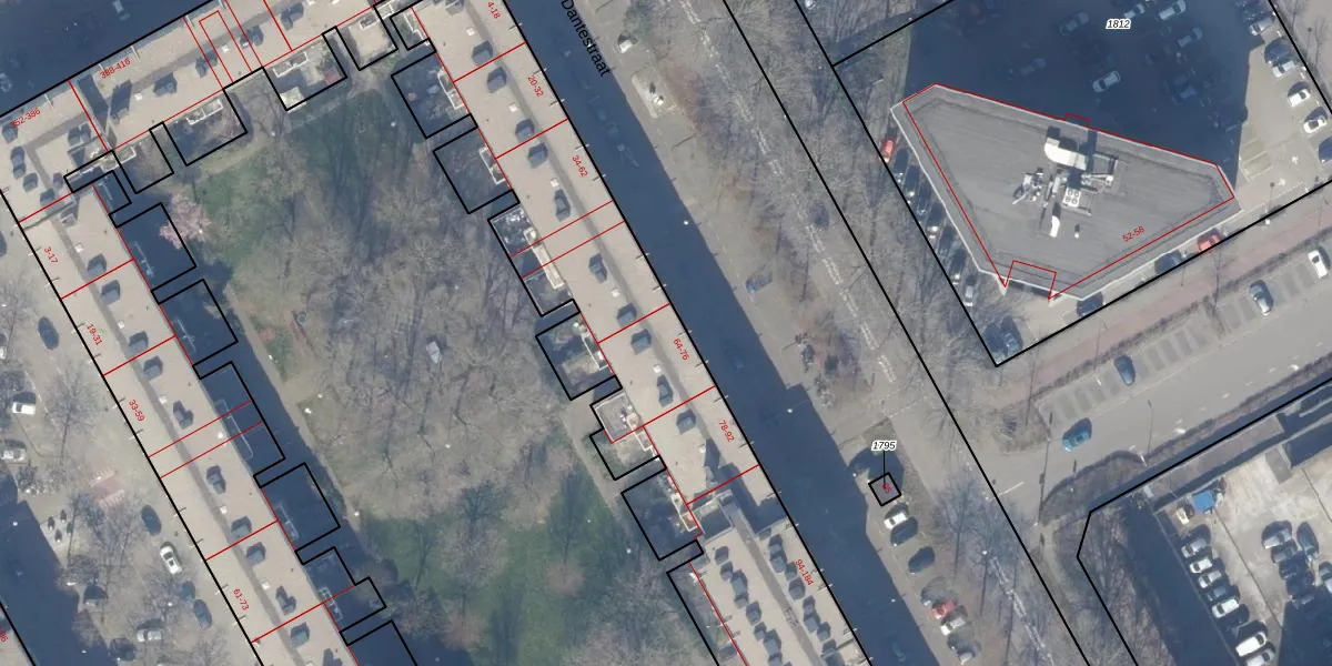 Dantestraat 64 is gelegen op kadastraal perceel WPK02A1639. Deze kadastrale aanduiding is uniek en wordt gebruikt door het Kadaster om eigendomsrechten en andere zakelijke rechten vast te leggen. Het perceel maakt onderdeel uit van de kadastrale gemeente Weesperkarspel.