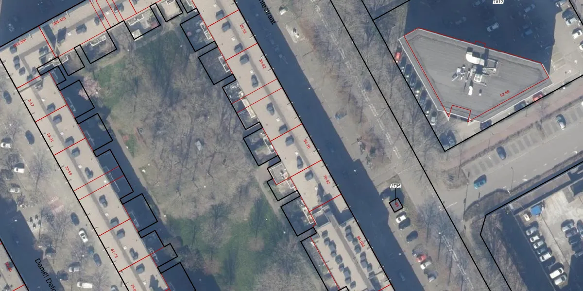 Het perceel waarop Dantestraat 72 staat heeft een oppervlakte van 1,1 ha. Dit is een zeer groot perceel. De perceeloppervlakte wordt geregistreerd door het Kadaster. Gedetailleerde informatie over de maten van dit perceel kunt u vinden in het rapport Kadastrale kaart met maatvoering van Dantestraat 72.