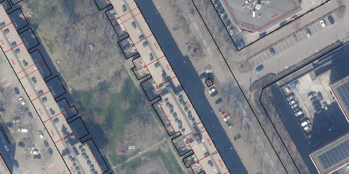 Het perceel waarop Dantestraat 94 staat heeft een oppervlakte van 1,1 ha. Dit is een zeer groot perceel. De perceeloppervlakte wordt geregistreerd door het Kadaster. Gedetailleerde informatie over de maten van dit perceel kunt u vinden in het rapport Kadastrale kaart met maatvoering van Dantestraat 94.