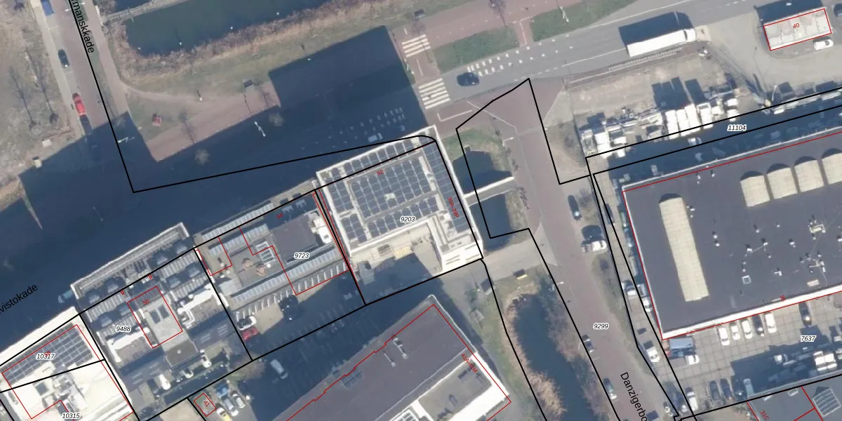 Het perceel waarop Danzigerbocht 39-D staat heeft een oppervlakte van 915 m². Dit is een groot perceel. De perceeloppervlakte wordt geregistreerd door het Kadaster. Gedetailleerde informatie over de maten van dit perceel kunt u vinden in het rapport Kadastrale kaart met maatvoering van Danzigerbocht 39-D.