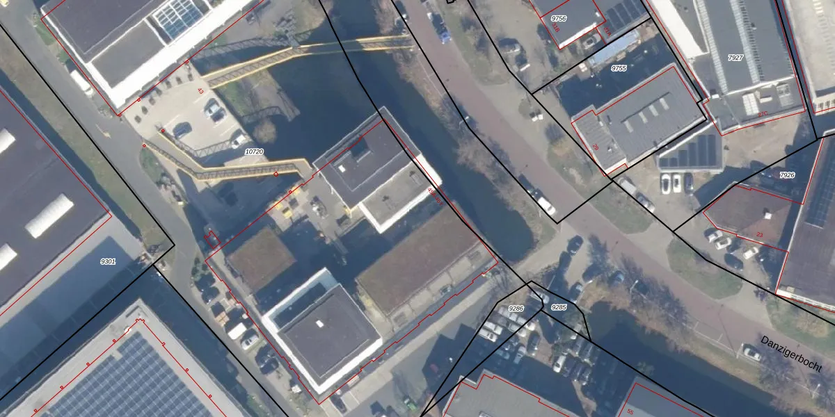 Het perceel waarop Danzigerbocht 45-A staat heeft een oppervlakte van 9130 m². Dit is een zeer groot perceel. De perceeloppervlakte wordt geregistreerd door het Kadaster. Gedetailleerde informatie over de maten van dit perceel kunt u vinden in het rapport Kadastrale kaart met maatvoering van Danzigerbocht 45-A.