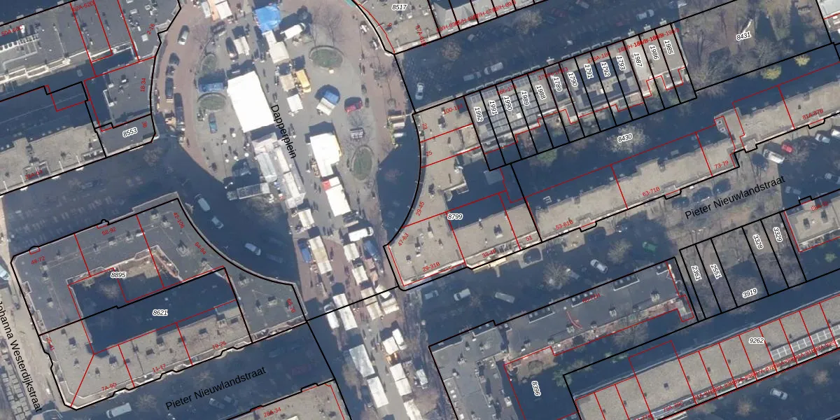 Het perceel waarop Dapperplein 43 staat heeft een oppervlakte van 981 m². Dit is een groot perceel. De perceeloppervlakte wordt geregistreerd door het Kadaster. Gedetailleerde informatie over de maten van dit perceel kunt u vinden in het rapport Kadastrale kaart met maatvoering van Dapperplein 43.
