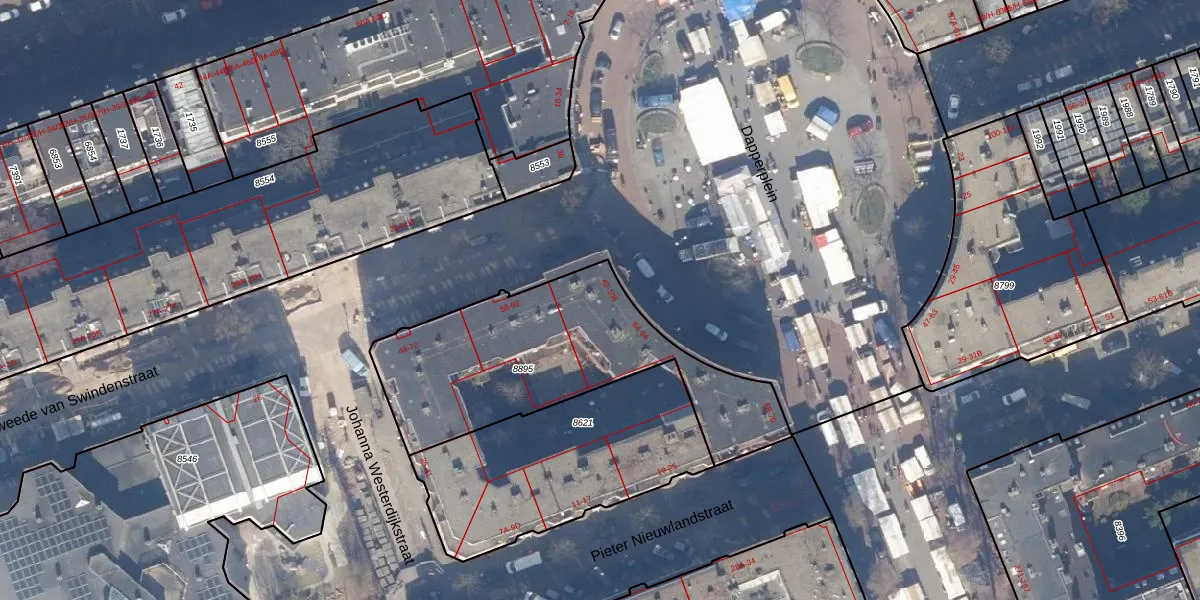 Dapperplein 50 is gelegen op kadastraal perceel ASD15S8895. Deze kadastrale aanduiding is uniek en wordt gebruikt door het Kadaster om eigendomsrechten en andere zakelijke rechten vast te leggen. Het perceel maakt onderdeel uit van de kadastrale gemeente Amsterdam.