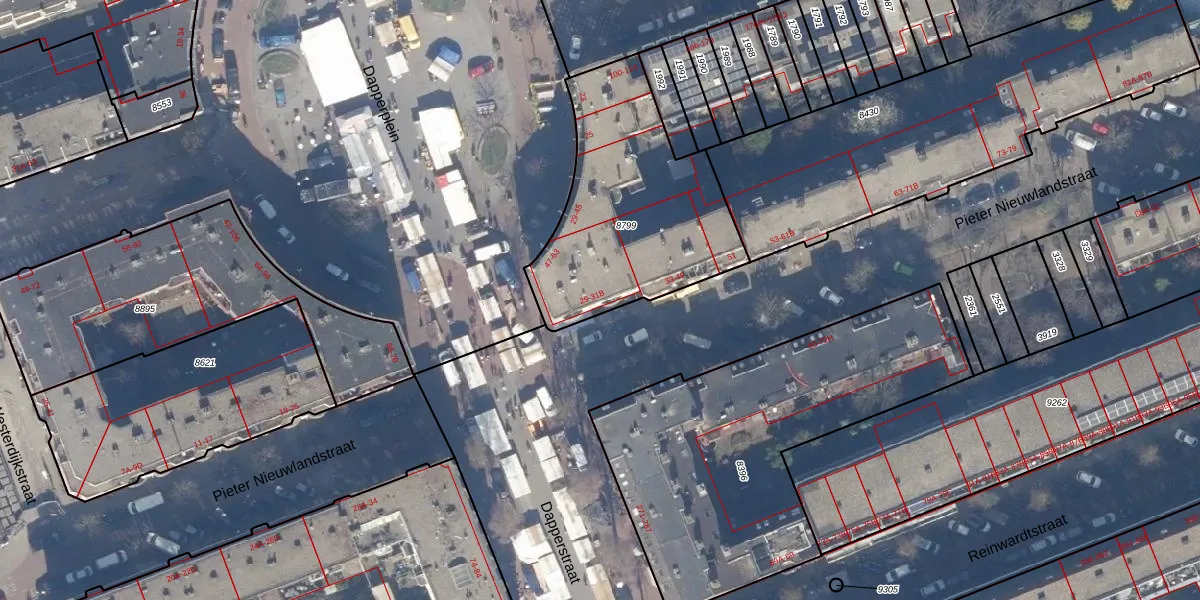 Het perceel waarop Dapperplein 53 staat heeft een oppervlakte van 981 m². Dit is een groot perceel. De perceeloppervlakte wordt geregistreerd door het Kadaster. Gedetailleerde informatie over de maten van dit perceel kunt u vinden in het rapport Kadastrale kaart met maatvoering van Dapperplein 53.