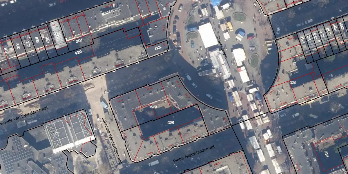 Dapperplein 54 is gelegen op kadastraal perceel ASD15S8895. Deze kadastrale aanduiding is uniek en wordt gebruikt door het Kadaster om eigendomsrechten en andere zakelijke rechten vast te leggen. Het perceel maakt onderdeel uit van de kadastrale gemeente Amsterdam.