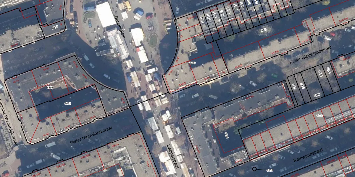Het perceel waarop Dapperplein 61 staat heeft een oppervlakte van 981 m². Dit is een groot perceel. De perceeloppervlakte wordt geregistreerd door het Kadaster. Gedetailleerde informatie over de maten van dit perceel kunt u vinden in het rapport Kadastrale kaart met maatvoering van Dapperplein 61.
