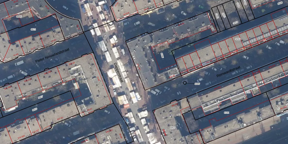 Dapperstraat 283 is gelegen op kadastraal perceel ASD15S8396. Deze kadastrale aanduiding is uniek en wordt gebruikt door het Kadaster om eigendomsrechten en andere zakelijke rechten vast te leggen. Het perceel maakt onderdeel uit van de kadastrale gemeente Amsterdam.