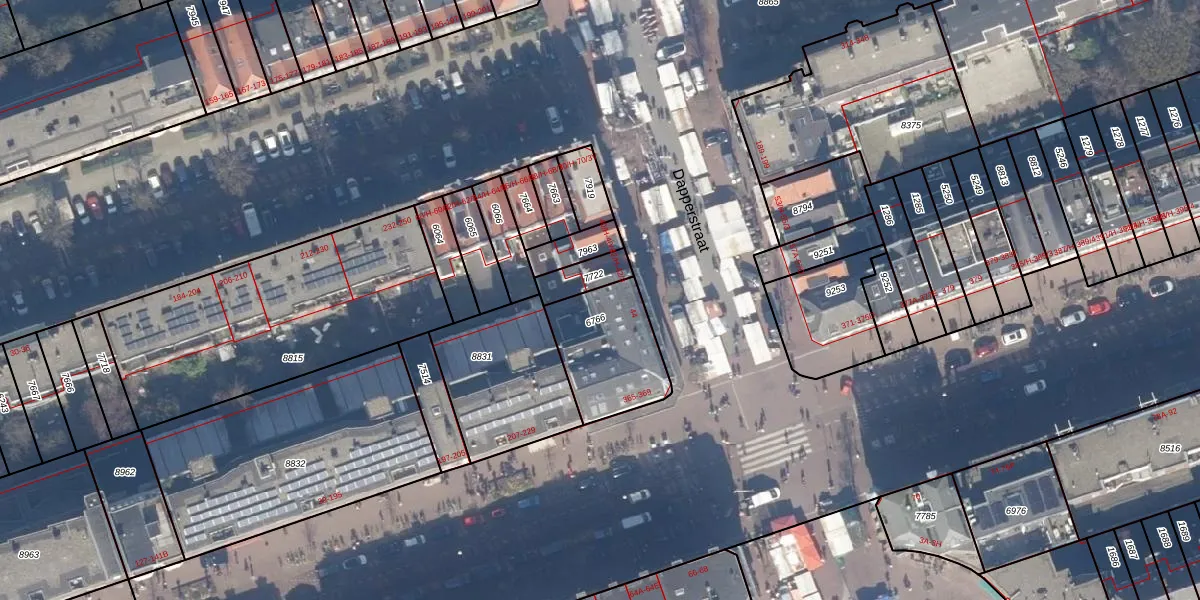 Het perceel waarop Dapperstraat 44-H staat heeft een oppervlakte van 338 m². Dit is een groot perceel. De perceeloppervlakte wordt geregistreerd door het Kadaster. Gedetailleerde informatie over de maten van dit perceel kunt u vinden in het rapport Kadastrale kaart met maatvoering van Dapperstraat 44-H.