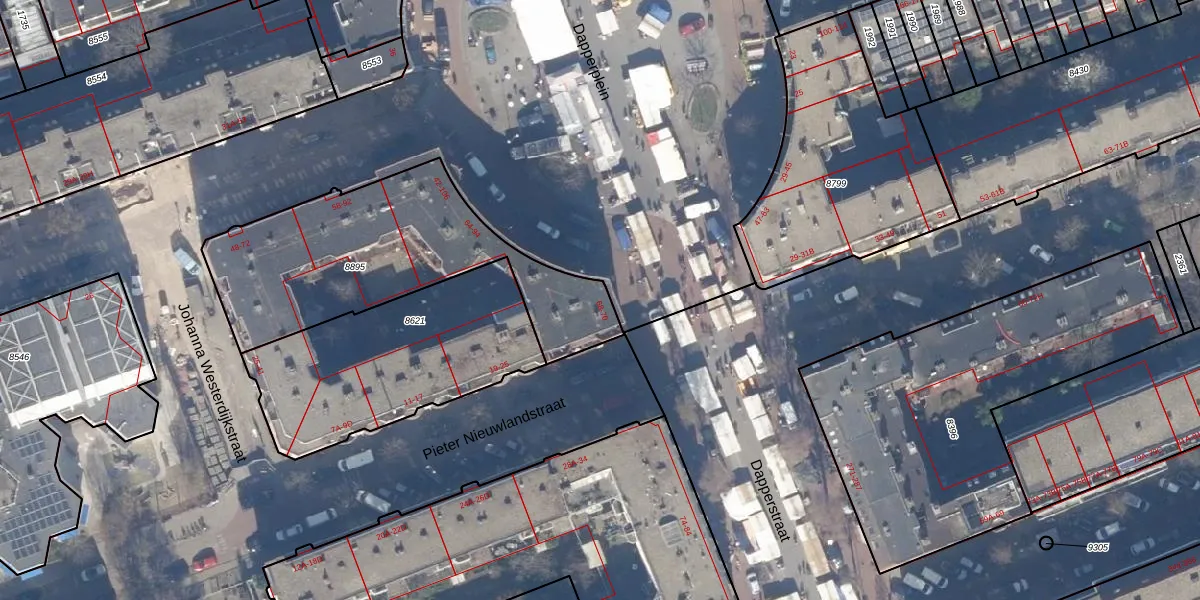Het perceel waarop Dapperstraat 68 staat heeft een oppervlakte van 1085 m². Dit is een zeer groot perceel. De perceeloppervlakte wordt geregistreerd door het Kadaster. Gedetailleerde informatie over de maten van dit perceel kunt u vinden in het rapport Kadastrale kaart met maatvoering van Dapperstraat 68.