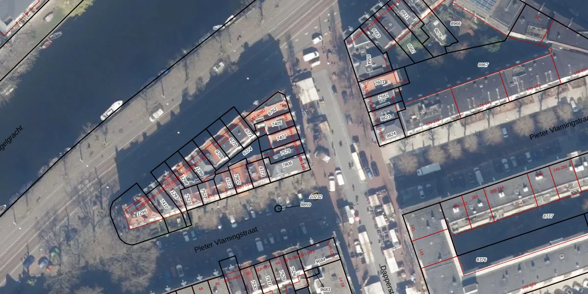 Het perceel waarop Dapperstraat 8-2 staat heeft een oppervlakte van 63 m². Dit is een klein perceel. De perceeloppervlakte wordt geregistreerd door het Kadaster. Gedetailleerde informatie over de maten van dit perceel kunt u vinden in het rapport Kadastrale kaart met maatvoering van Dapperstraat 8-2.