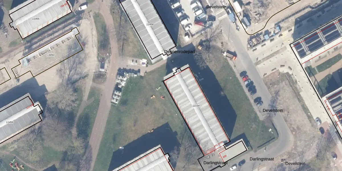 Het perceel waarop Darlingstraat 1053 staat heeft een oppervlakte van 1110 m². Dit is een zeer groot perceel. De perceeloppervlakte wordt geregistreerd door het Kadaster. Gedetailleerde informatie over de maten van dit perceel kunt u vinden in het rapport Kadastrale kaart met maatvoering van Darlingstraat 1053.