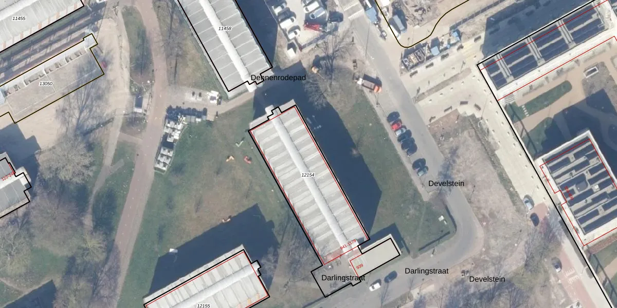 Het perceel waarop Darlingstraat 1099 staat heeft een oppervlakte van 1110 m². Dit is een zeer groot perceel. De perceeloppervlakte wordt geregistreerd door het Kadaster. Gedetailleerde informatie over de maten van dit perceel kunt u vinden in het rapport Kadastrale kaart met maatvoering van Darlingstraat 1099.