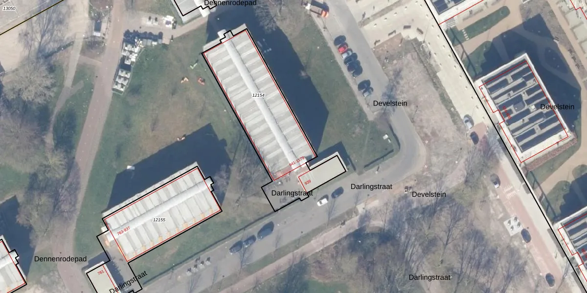 Het perceel waarop Darlingstraat 1127 staat heeft een oppervlakte van 1110 m². Dit is een zeer groot perceel. De perceeloppervlakte wordt geregistreerd door het Kadaster. Gedetailleerde informatie over de maten van dit perceel kunt u vinden in het rapport Kadastrale kaart met maatvoering van Darlingstraat 1127.