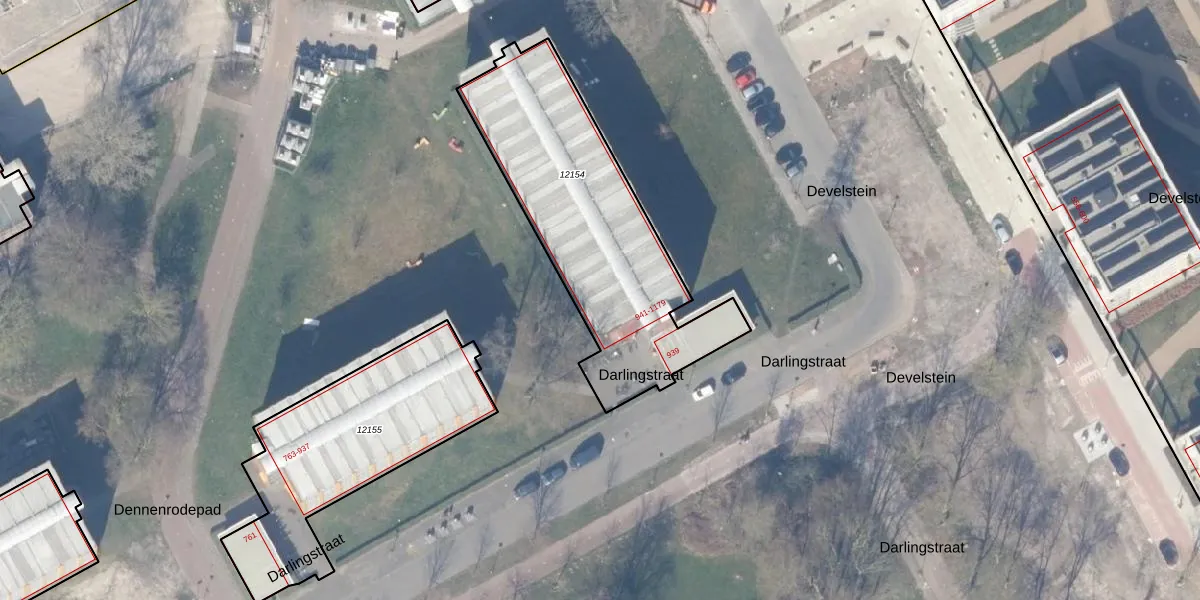 Het perceel waarop Darlingstraat 1129 staat heeft een oppervlakte van 1110 m². Dit is een zeer groot perceel. De perceeloppervlakte wordt geregistreerd door het Kadaster. Gedetailleerde informatie over de maten van dit perceel kunt u vinden in het rapport Kadastrale kaart met maatvoering van Darlingstraat 1129.
