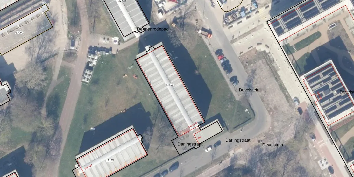 Het perceel waarop Darlingstraat 1147 staat heeft een oppervlakte van 1110 m². Dit is een zeer groot perceel. De perceeloppervlakte wordt geregistreerd door het Kadaster. Gedetailleerde informatie over de maten van dit perceel kunt u vinden in het rapport Kadastrale kaart met maatvoering van Darlingstraat 1147.