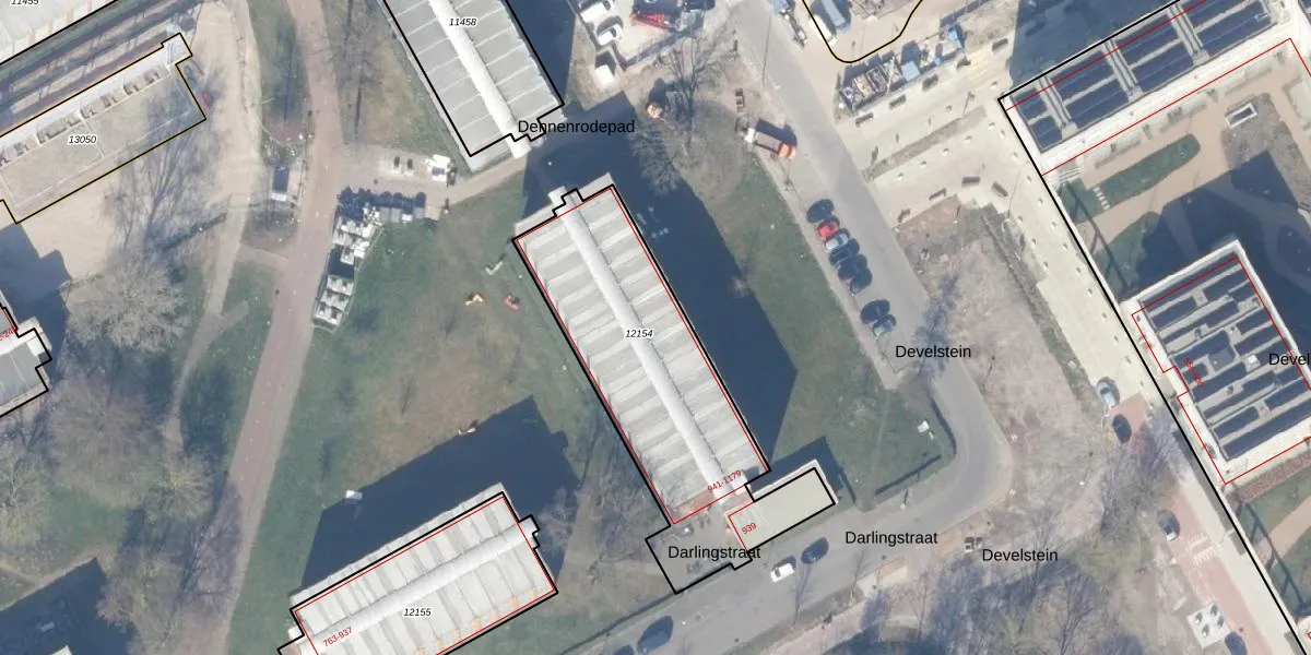 Het perceel waarop Darlingstraat 1151 staat heeft een oppervlakte van 1110 m². Dit is een zeer groot perceel. De perceeloppervlakte wordt geregistreerd door het Kadaster. Gedetailleerde informatie over de maten van dit perceel kunt u vinden in het rapport Kadastrale kaart met maatvoering van Darlingstraat 1151.