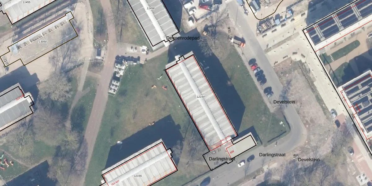 Het perceel waarop Darlingstraat 1157 staat heeft een oppervlakte van 1110 m². Dit is een zeer groot perceel. De perceeloppervlakte wordt geregistreerd door het Kadaster. Gedetailleerde informatie over de maten van dit perceel kunt u vinden in het rapport Kadastrale kaart met maatvoering van Darlingstraat 1157.