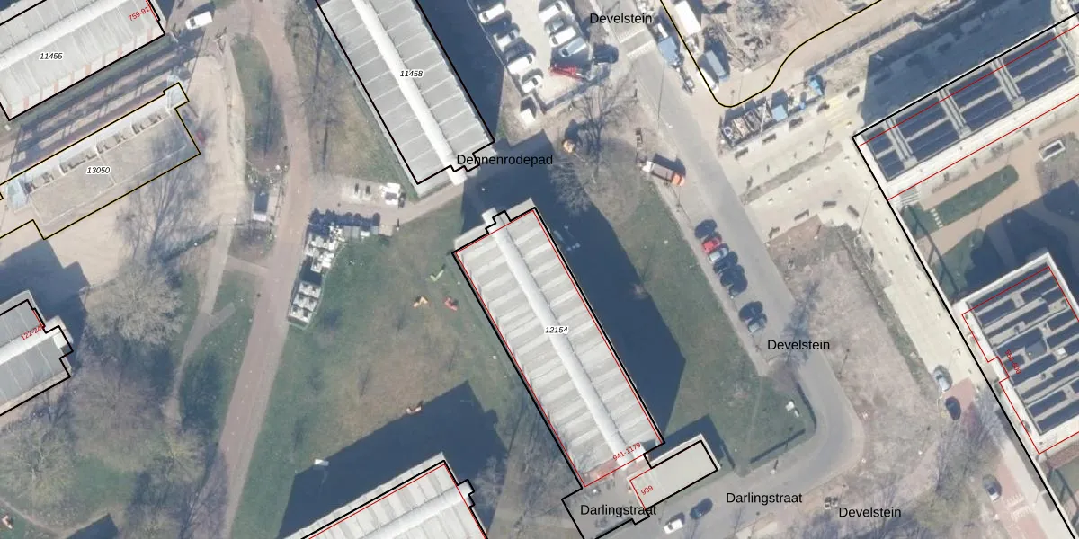 Het perceel waarop Darlingstraat 1167 staat heeft een oppervlakte van 1110 m². Dit is een zeer groot perceel. De perceeloppervlakte wordt geregistreerd door het Kadaster. Gedetailleerde informatie over de maten van dit perceel kunt u vinden in het rapport Kadastrale kaart met maatvoering van Darlingstraat 1167.